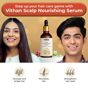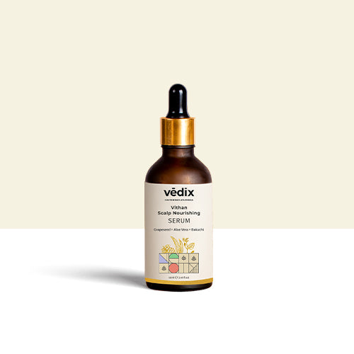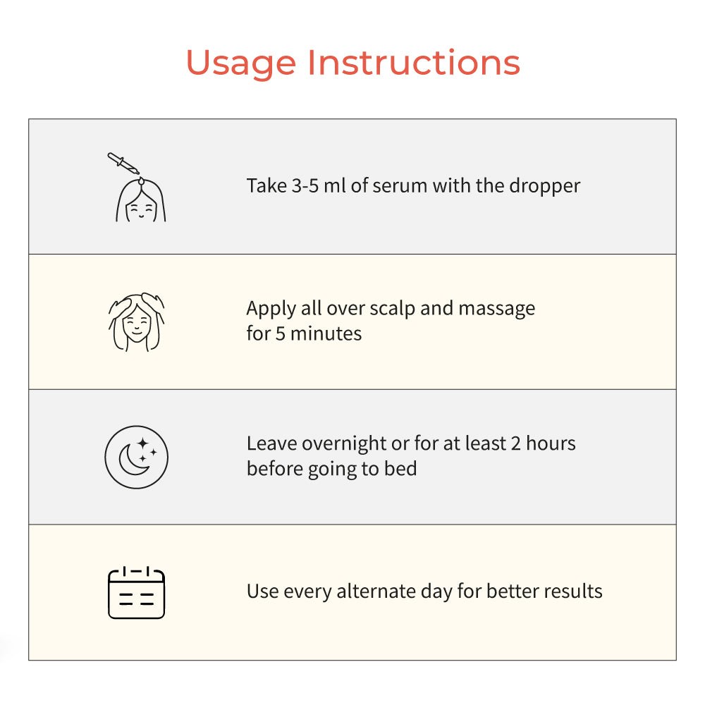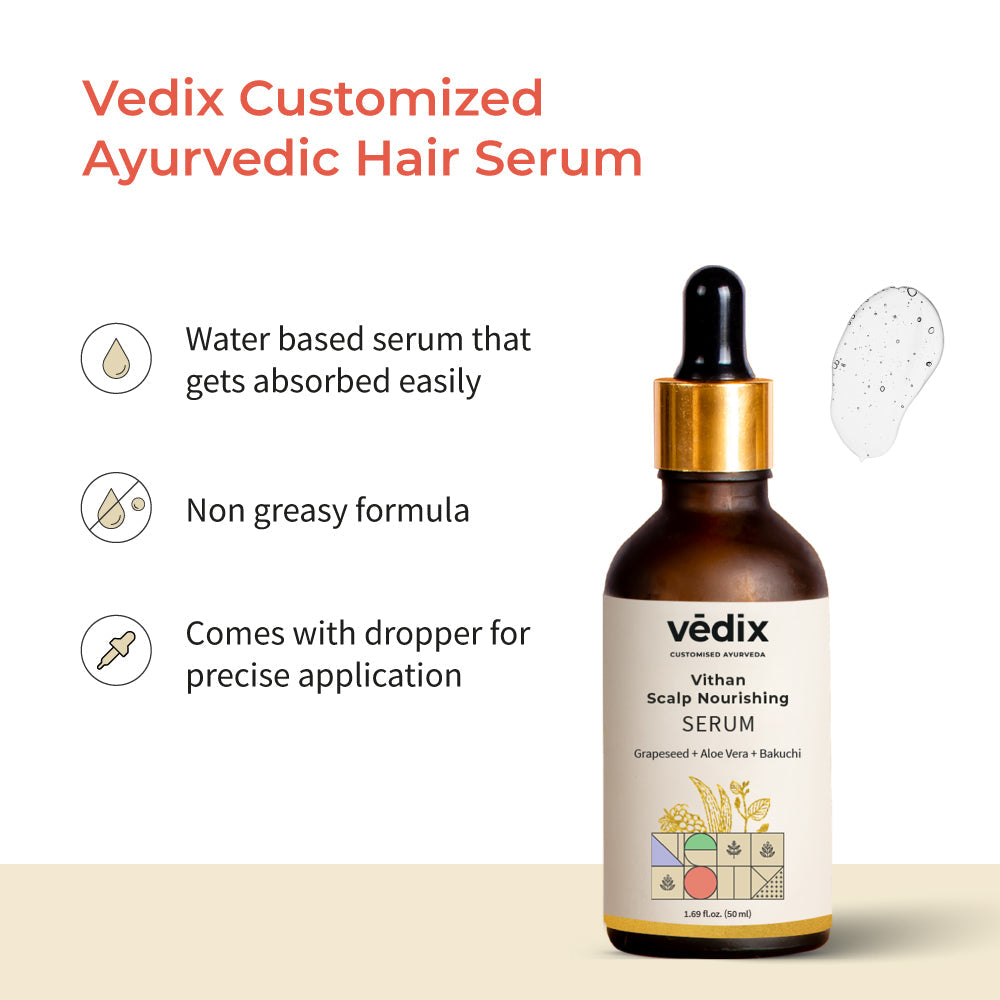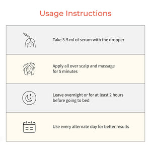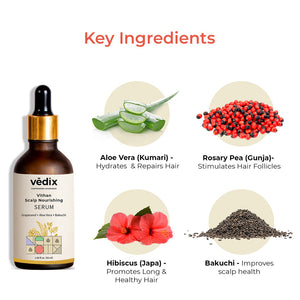 AYURVEDIC HAIR GROWTH SERUM: Regulates hair fall and helps lessen hair breakage. Helps rejuvenate damaged hair, strengthens hair roots & follicles.